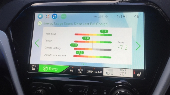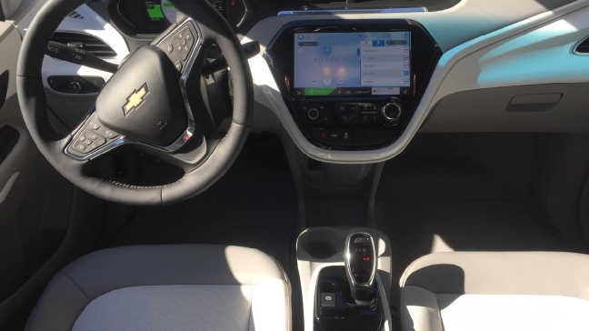 The coolest cutting-edge feature in the Bolt EV is the rearview mirror that doubles as a rear camera. One to note: Fast charge capability is a $750 option.