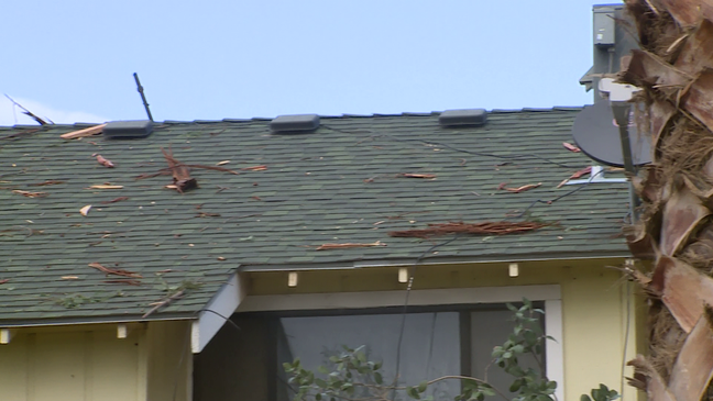 "We realized how bad the thing strike. We're lucky that we're alive," Fernandez said. Pieces of redwood, big and small, went flying everywhere. One piece punctured the side of his home.