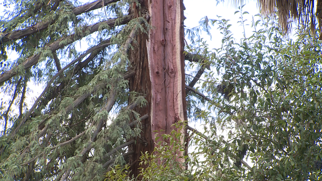 VIDEO: Lightning strikes 50-year-old redwood tree