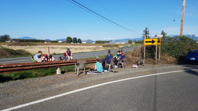 So both sides of the family regularly meet along where E. Boundary Road on the U.S. side runs parallel to '0' Avenue in Abbotsford on the Canadian side. The border is nearly invisible there, separated by a small grassy median and a marker denoting the boundary, which runs right along the 49th parallel.