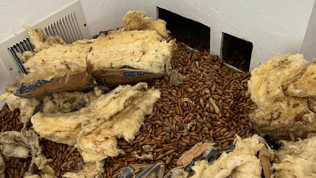 The pest control company told The National Desk the acorns had to be thrown out because they were covered in fiberglass and rodent droppings.